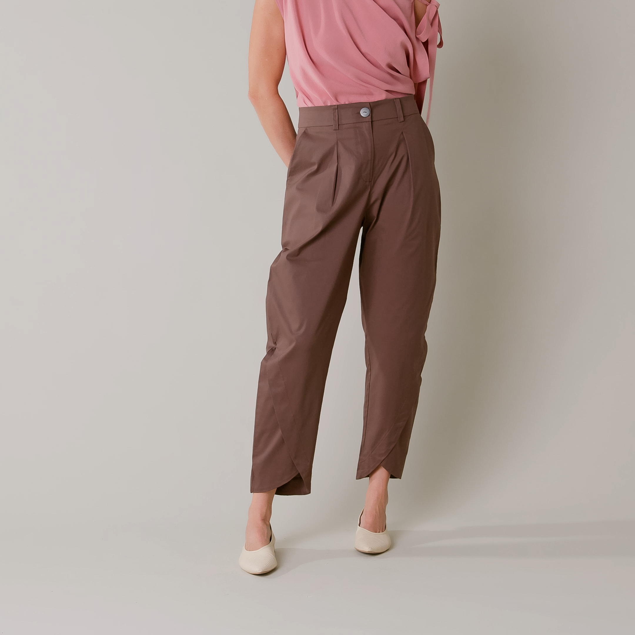 Marca com foco em silhuetas arquitetônicas, trabalha muitos tecidos tecnológicos de fácil manutenção, volumes diferentes, sempre com mangas e golas em destaque.