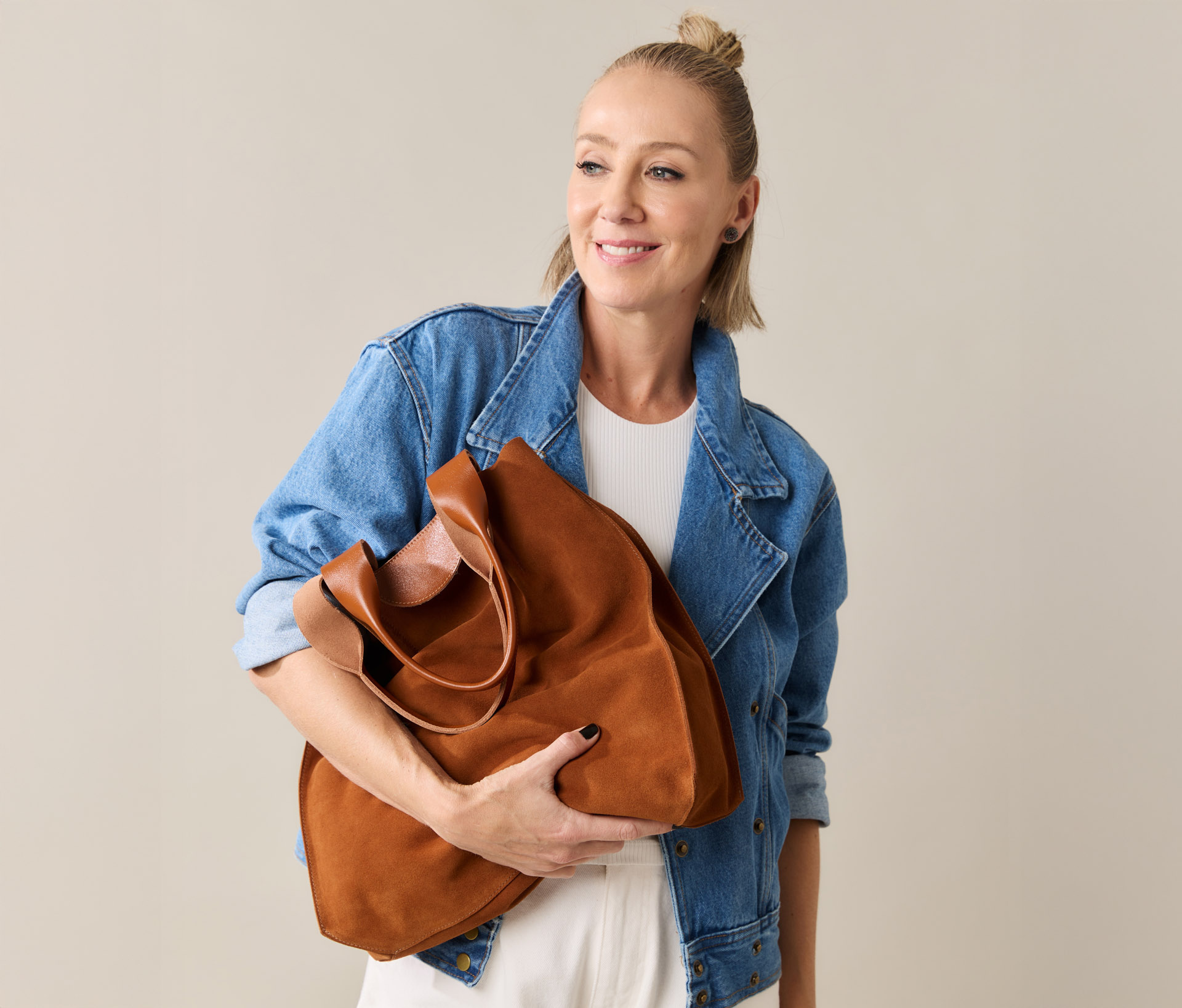 Peça curinga do armário, neutra, elegante e cheia de bossa. Do mercado à reunião, da viagem ao final de semana: vai com tudo.