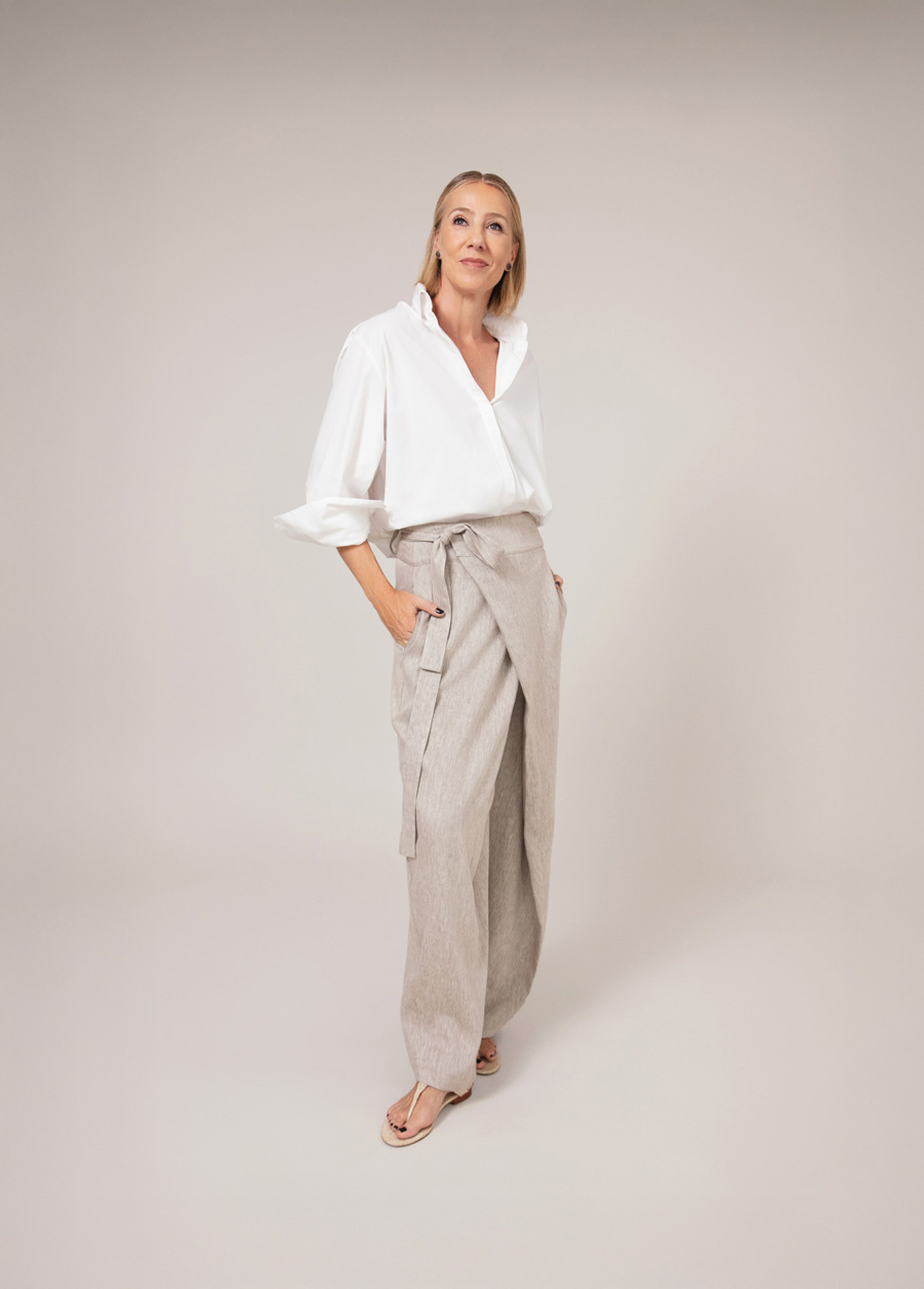 Aquela peça que entrega elegância sem esforço. Com esse transpasse lindo e a amarração que valoriza a cintura, ela tem um quê de alfaiataria descomplicada. Os bolsos laterais trazem a praticidade que a gente ama e o tecido, além de leve e confortável, é 100% biodegradável*, ou seja, linda por fora e consciente por dentro. Daquelas que vão do look arrumado ao despretensioso facinho, facinho.