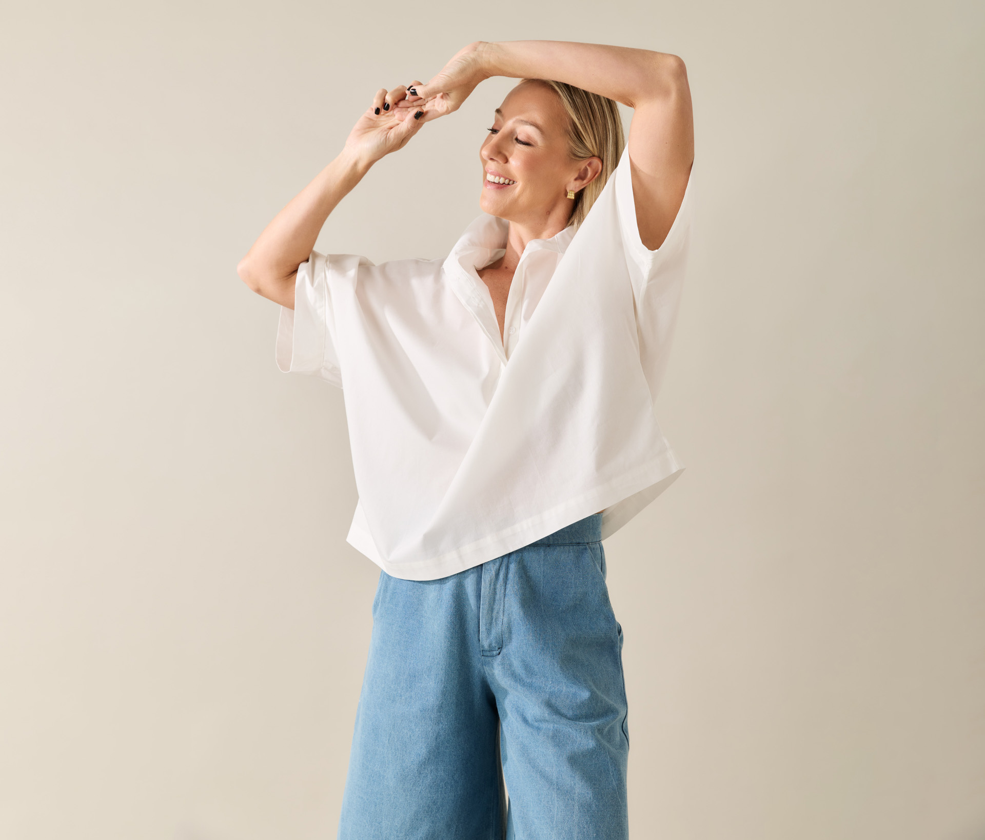 – A gola clássica e o fechamento frontal oculto garantem o toque minimalista;