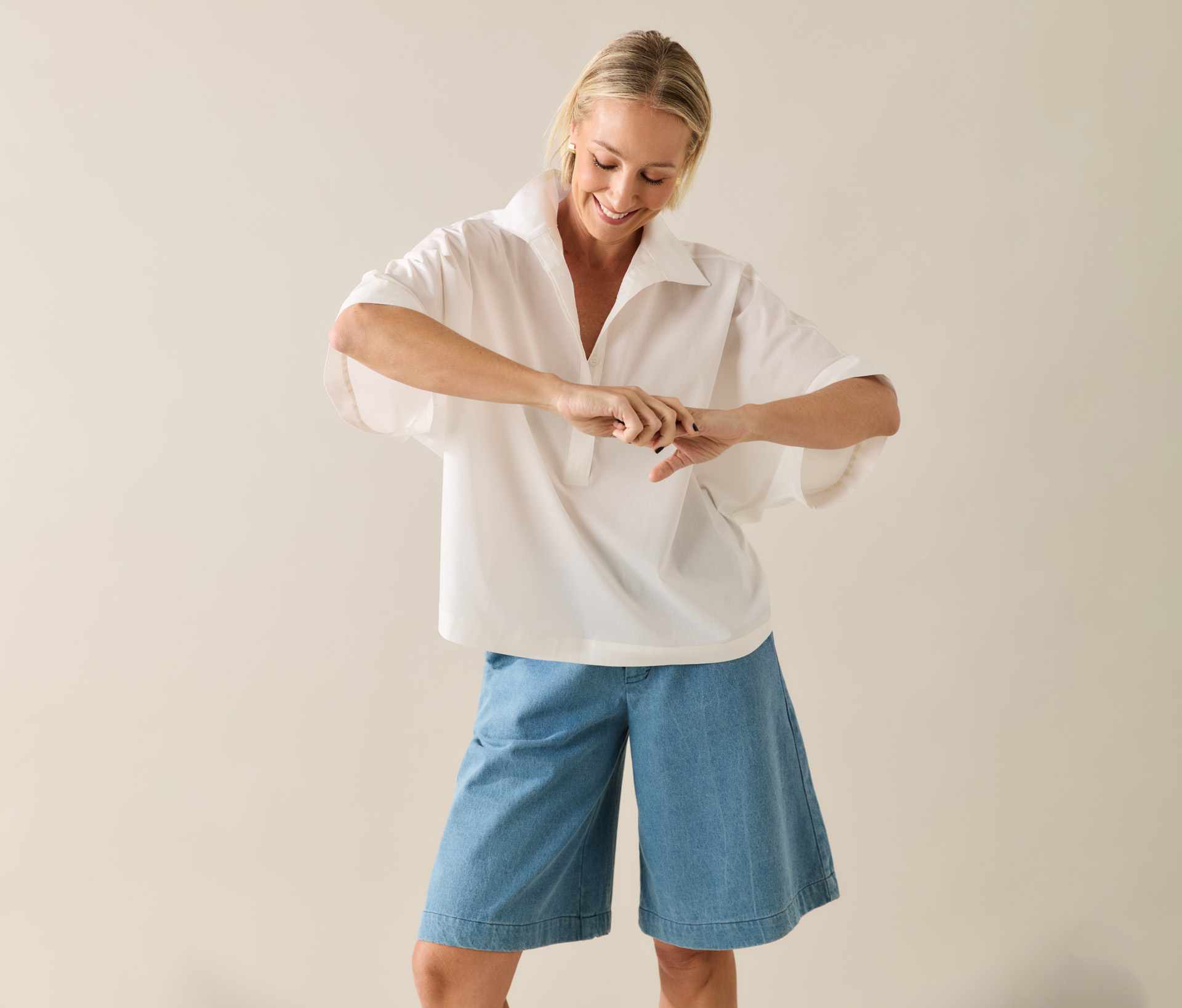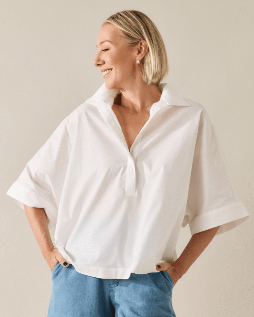 – Substitui a camisa branca tradicional para trabalhar no verão e meia estação;
