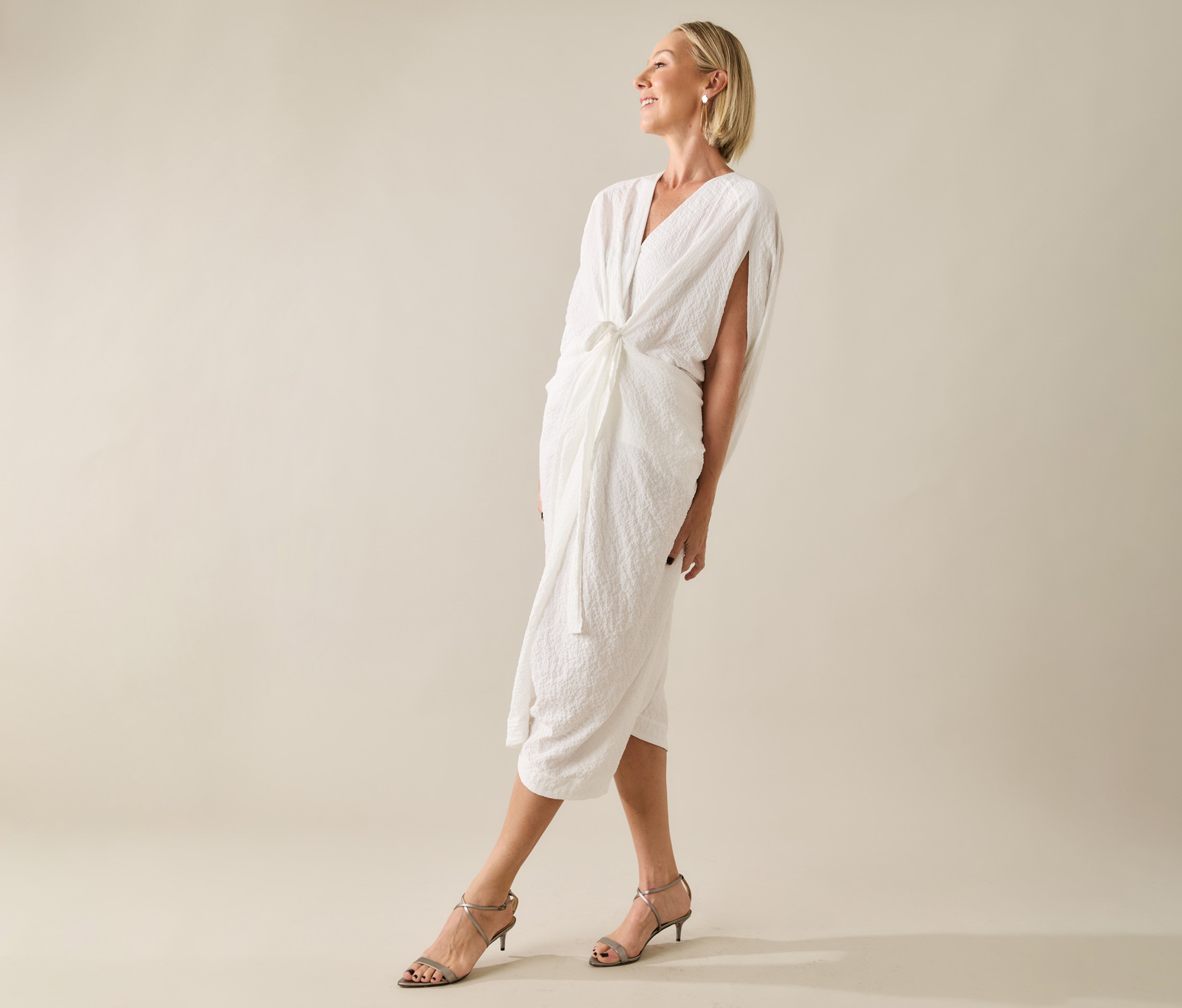 – Os bolsos laterais e o cinto na cintura garantem praticidade e proporção, enquanto o fechamento frontal mantém o visual limpo e sofisticado.