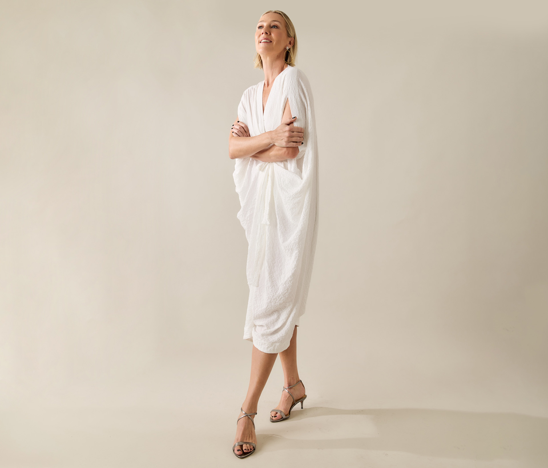 – Esse é daqueles que desafiam rótulos: parece vestido, lembra um quimono, mas tem o conforto de uma macacão;
