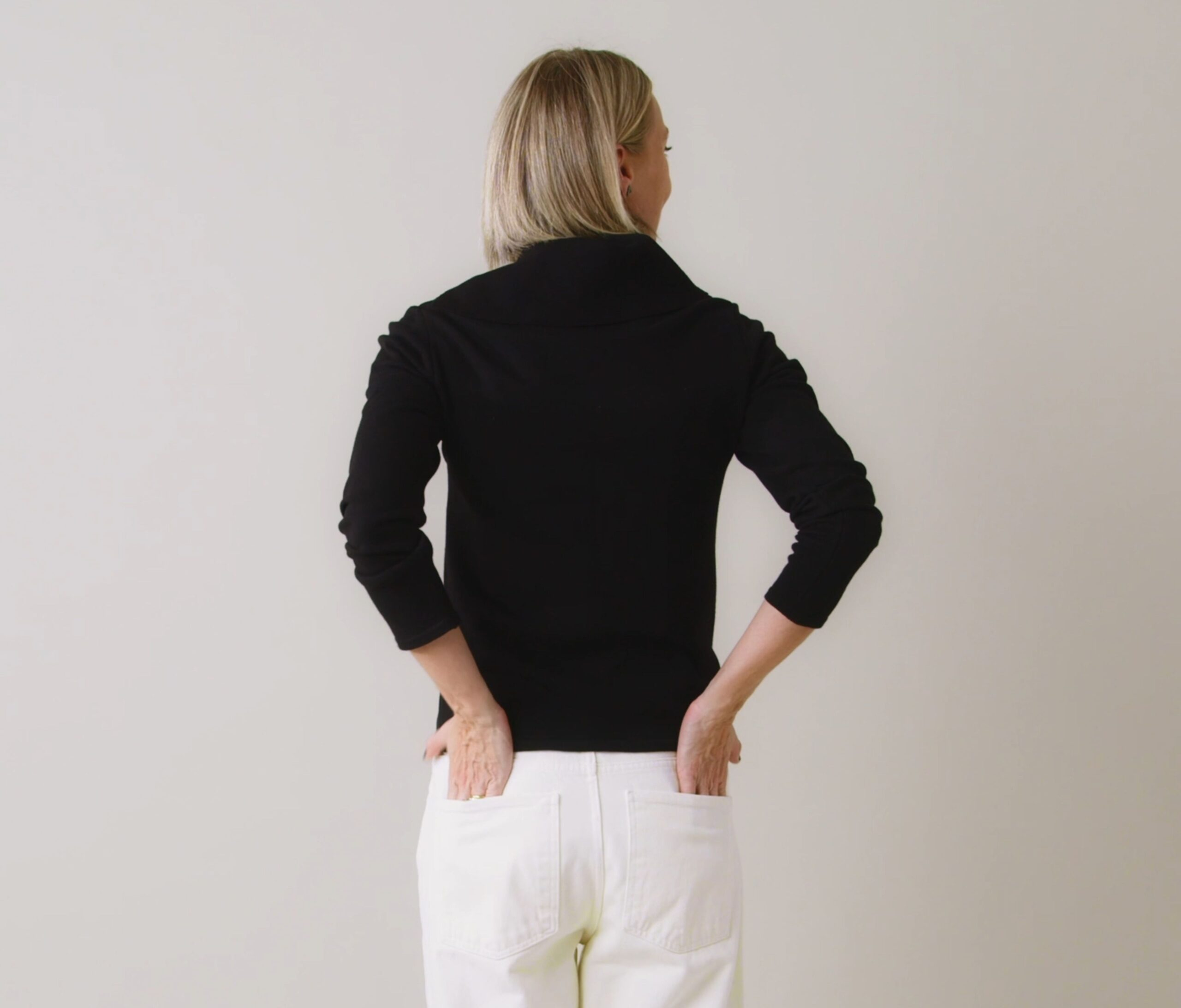 – É possível fazer dois tipos de decote, ou bem alto ou mostrando mais a pele;